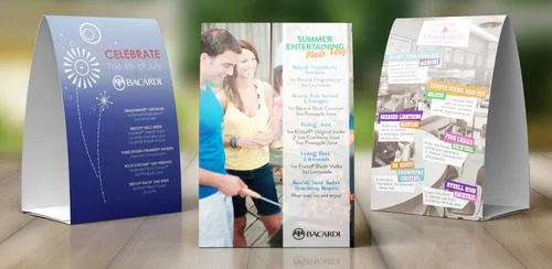 Drink menus created for Bacardi to highlight different promotions at area bars and taverns.